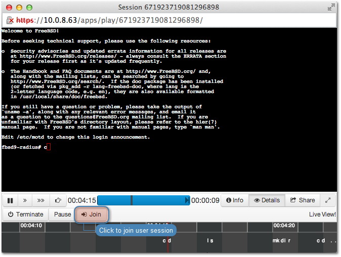 Wheel Fudo PAM allows joining an ongoing session to work simultaneously with the remote user.