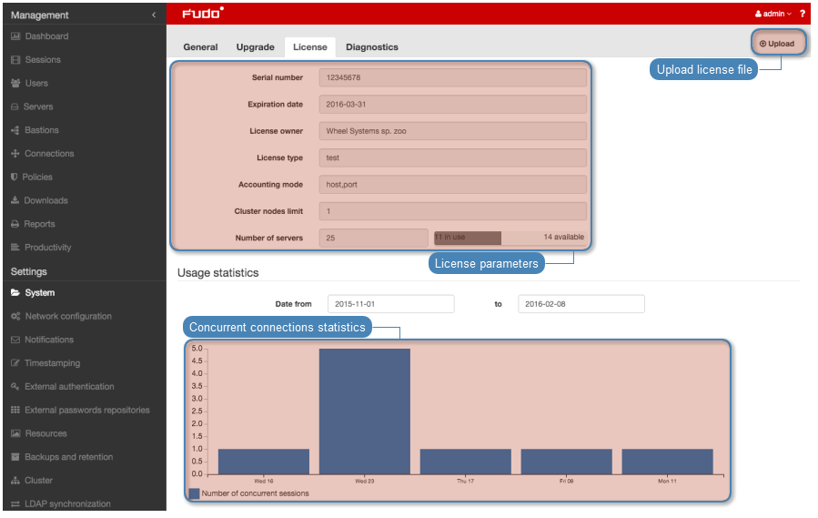 - Browse the file system to find the license file and click OK to upload and replace current license definition.