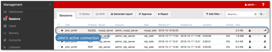This chapter contains an example of a basic Fudo PAM configuration, to monitor SQL queries to a remote MySQL database server.