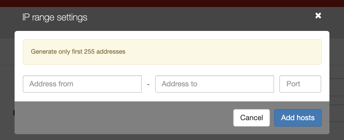 - Click an button in order to add a range of IP addresses.