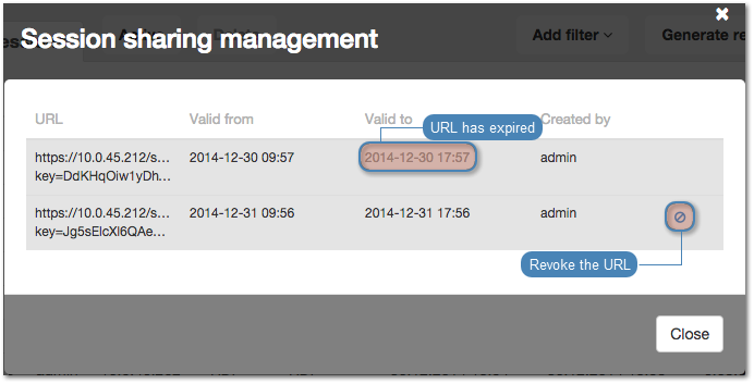Revoking session URL