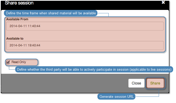 - Provide session availability time frame and click to generate URL.