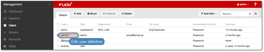 Editing a user¶